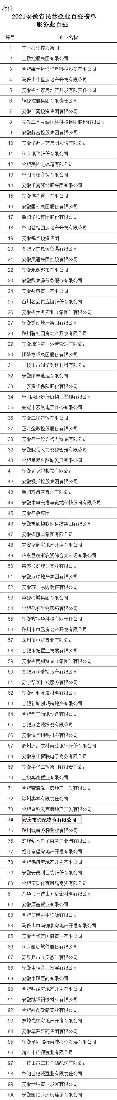 據了解,安徽省上規(guī)模民營企業(yè)調研及百強排序活動迄今已連續(xù)開展23年,產生了較大的社會影響,受到各級黨委政府的高度重視和社會各界的廣泛關注。今年4月份以來,安徽省工商聯(lián)、省經信廳、省市場監(jiān)管局聯(lián)合開展了“2020年度安徽省上規(guī)模民營企業(yè)調研及百強排序活動”。按照企業(yè)自愿參與原則,經過審核、評議等環(huán)節(jié),依據企業(yè)2020年度主要經濟指標,確定了2021安徽省民營企業(yè)營收百強、制造業(yè)綜合百強和服務業(yè)百強。安慶市通配物資有限公司再次榮登安徽省“民營企業(yè)服務業(yè)百強”排名第74位。