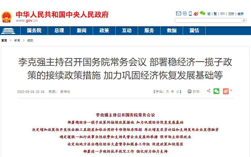 8月24日,國務(wù)院總理李克強(qiáng)主持召開國務(wù)院常務(wù)會議,部署穩(wěn)經(jīng) ...